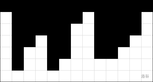 每一段白色的横线取出并逐个计算,累加答案。由于有一个排序,最多有 个长度为 的横线,因此总的复杂度为 的,可过。且只要有黑色的格子这东西就不会卡满。因此效率是非常可观的。